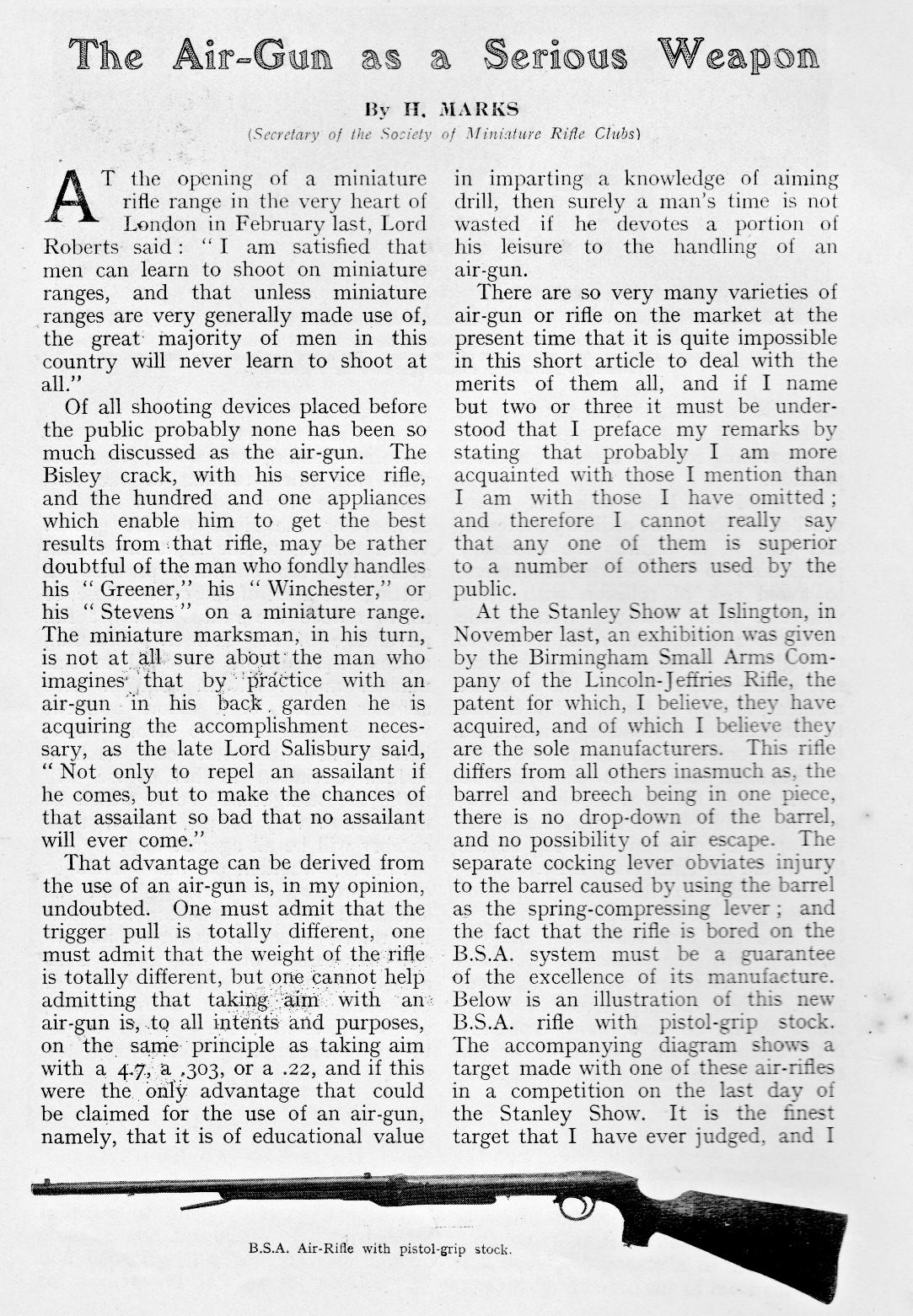 By H Marks, Secretary of the Society of Miniature Rifle Clubs.