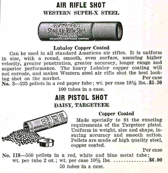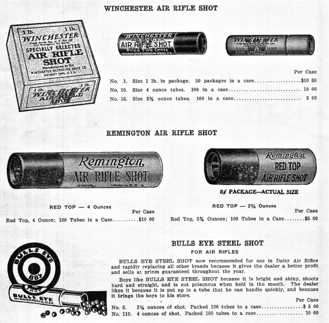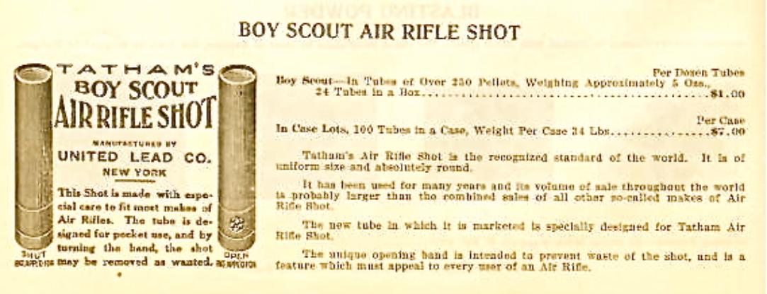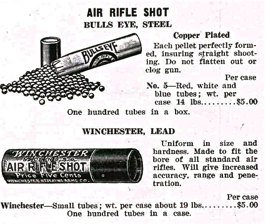 Winchester first marketed tubes of lead shot for air rifles in 1914.(from Arms & Explosives,courtesy Col.Tony Williams)