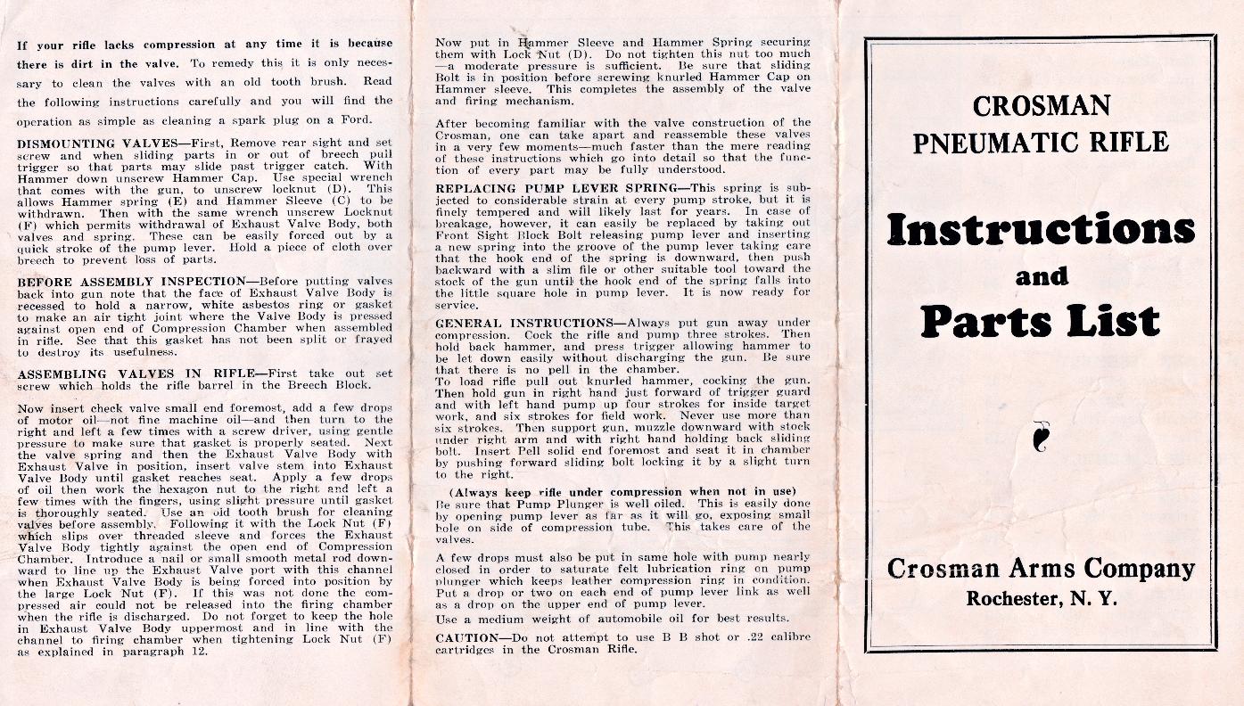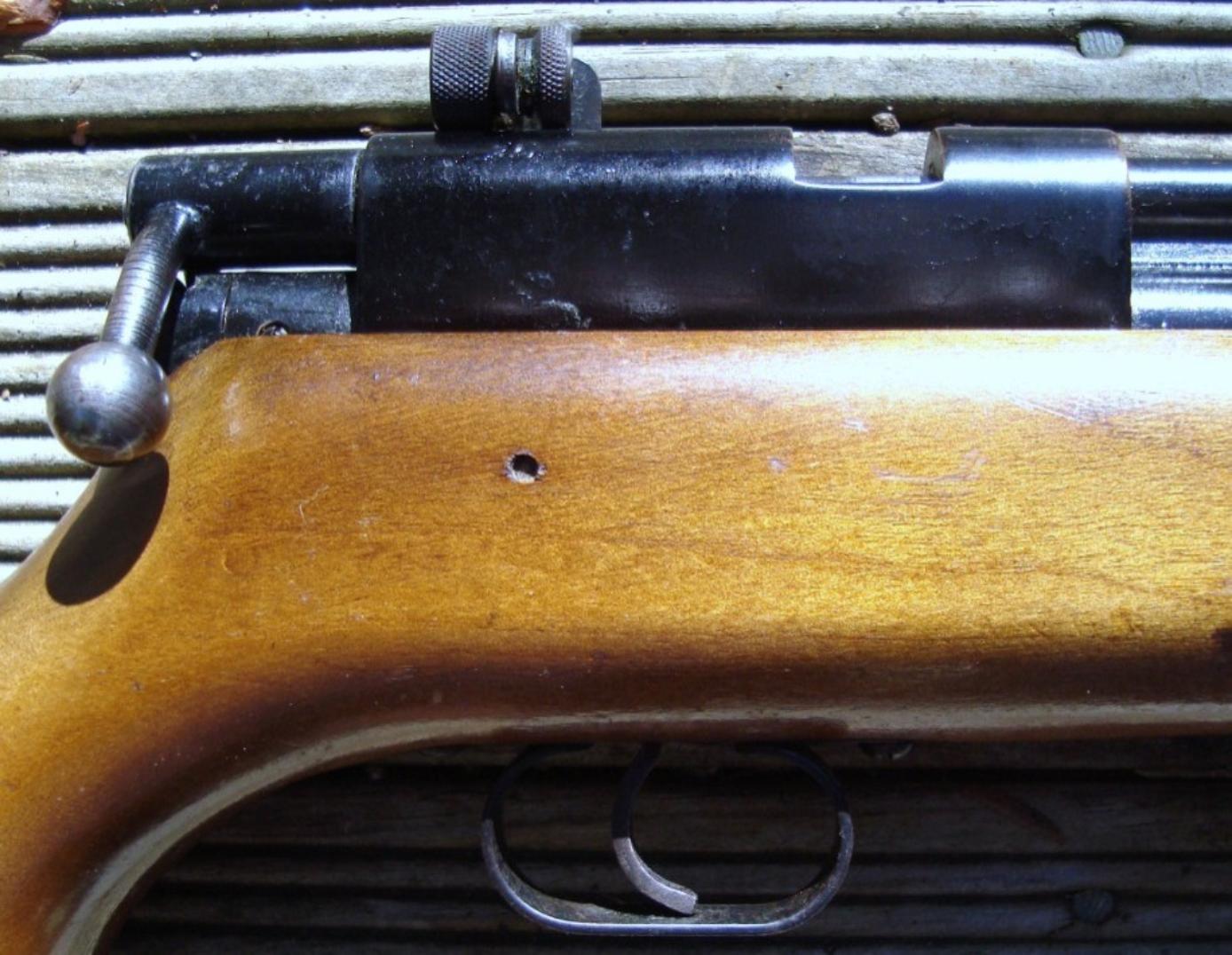 Crosman Model M1 BB gun. Circa 1968. A spring/piston BB shooter with a difference. This BB gun has a poppet valve air control device that opens only when the air in the cylinder is pressurised. It is said to give the gun an extra bit of power.