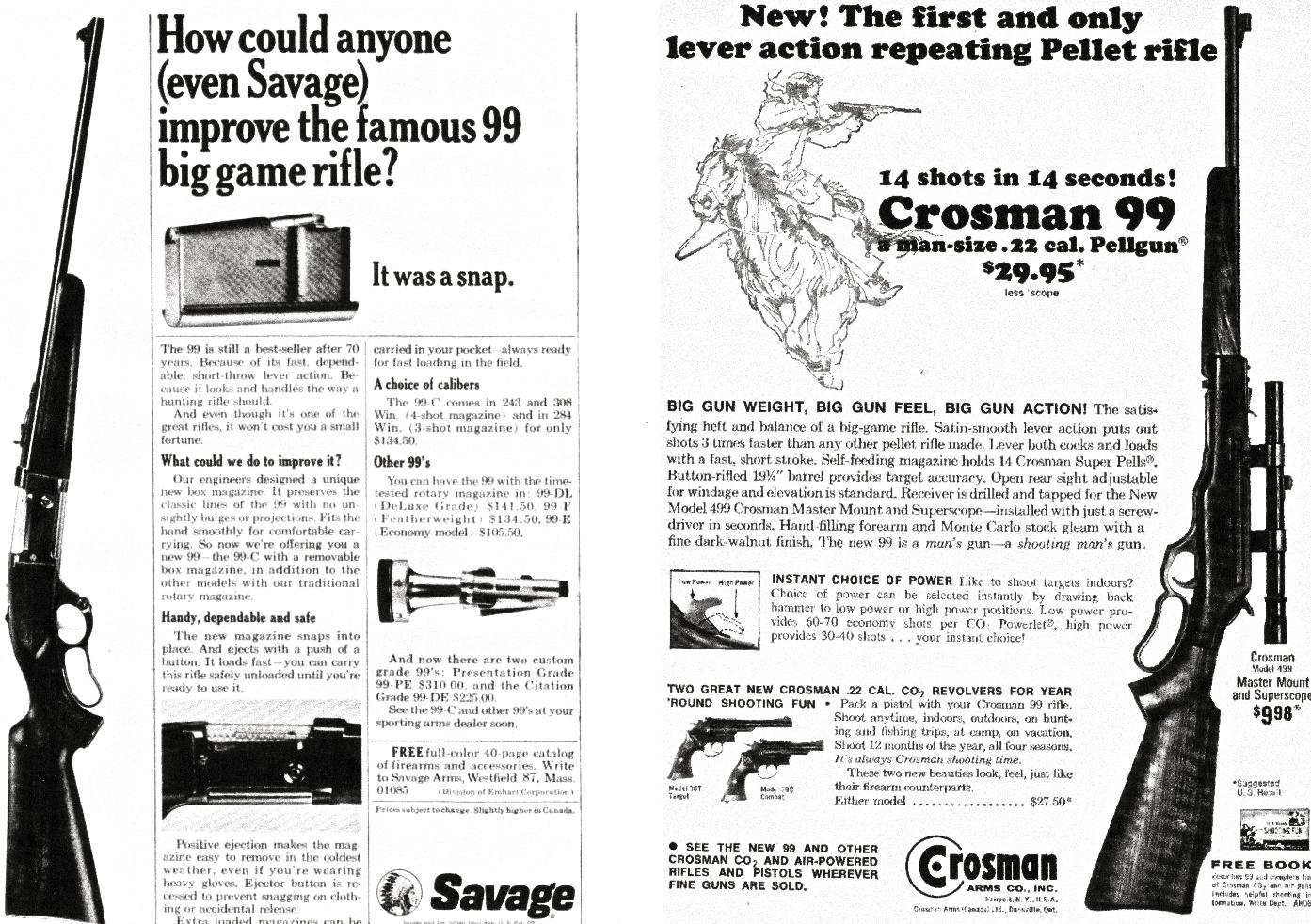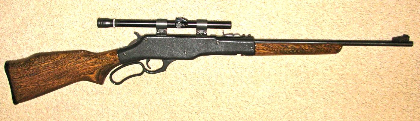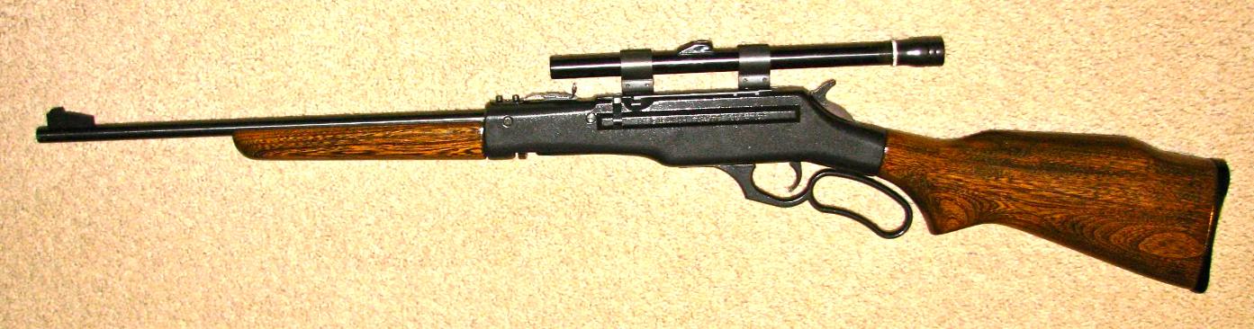 A nifty Model 99 lever-action,CO2 powered rifle from the 1960s. Efficient shooter(mv around 550fps-600fps).Has a high power setting.